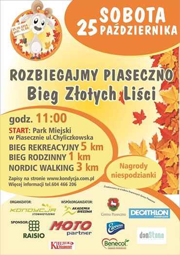 Zapraszamy do udziału w Biegu Złotych Liści w Piasecznie.